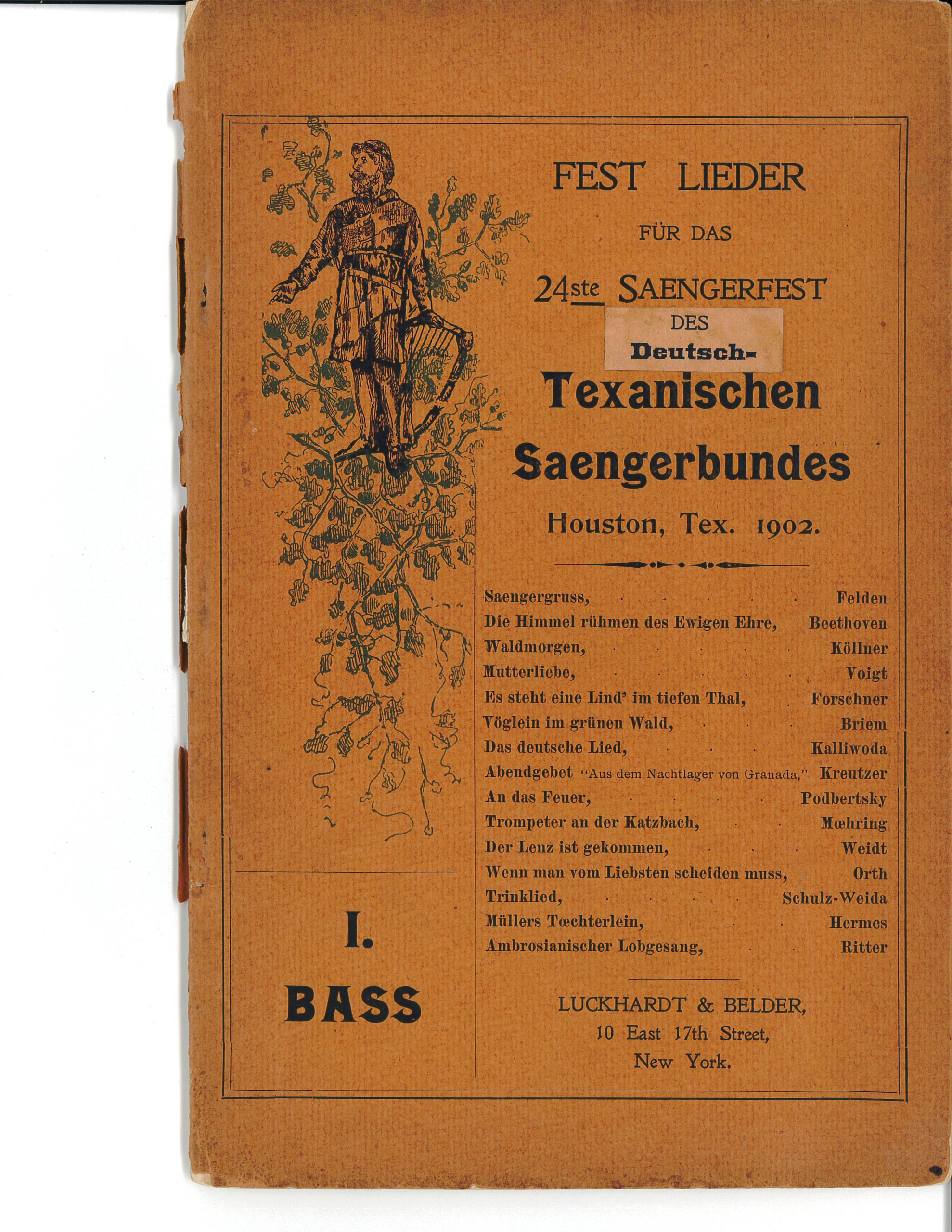 The collection also contains published songbooks from the early 1900s when the Houston Saengerbund performed as part of the annual Deutsch Texanischer Sängerbund (DTSB) festival. The festival then rotated among host cities in Texas such as Austin, Houston, and San Antonio.