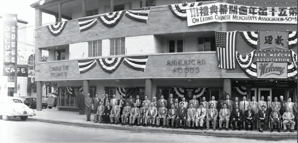 The On Leong Merchants Association formed in 1893 as a national mutual aid society for Chinese men. The Houston chapter filed with the Texas Secretary of State in 1944, although it existed prior to that time. Photo courtesy of the Houston History Research Center, Houston Public Library, MSS-1248-0404.